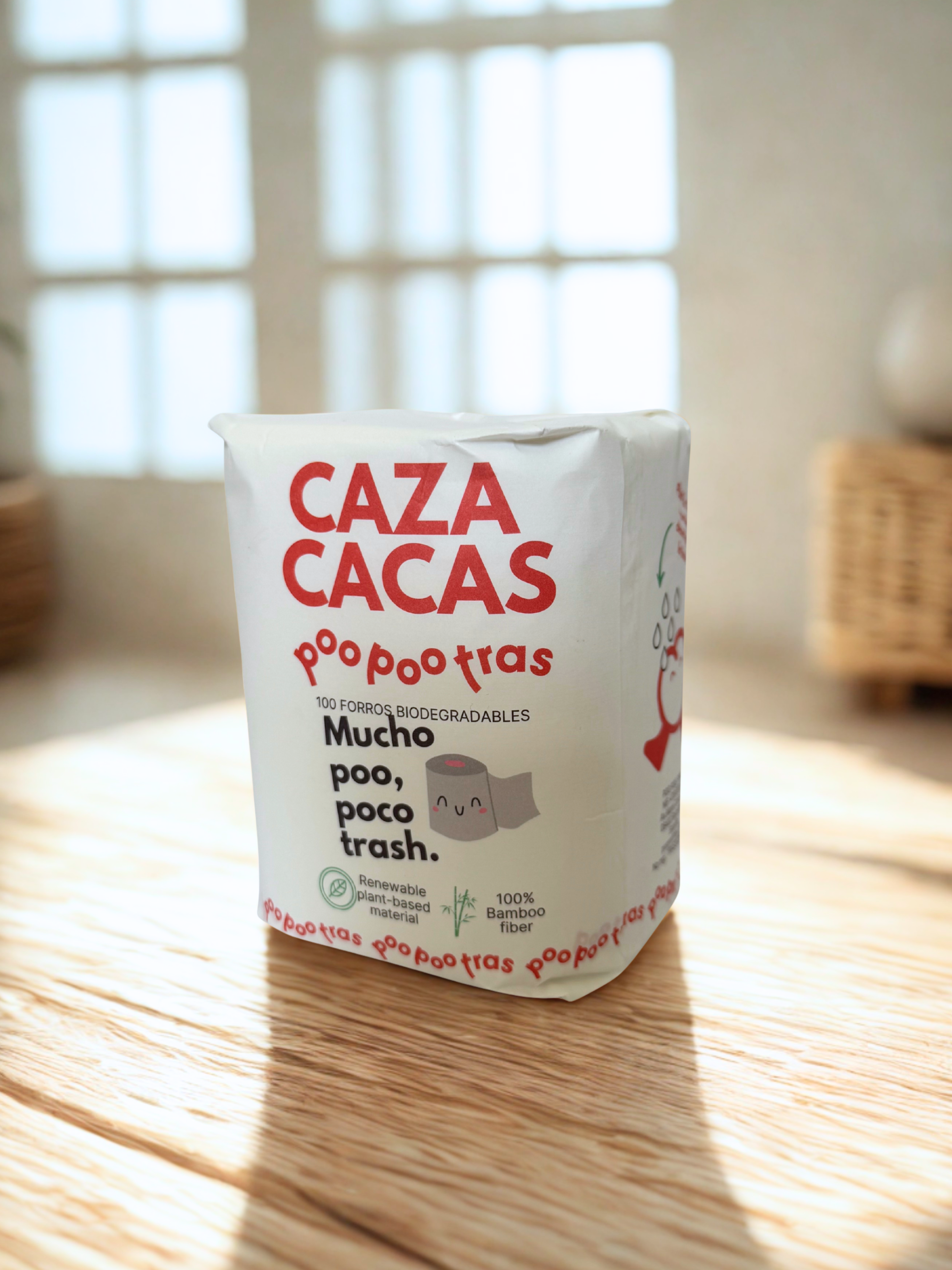 Si usas cazacacas, simplemente tira la caca a la basura (como lo harías con un pañal desechable) o al wáter. El material es apto para tirarlo al wáter, pero al igual que no es recomendable tirar mucho papel, ni toallitas (aunque éstas sean desechables), recomendamos tirar la caca al wáter y el cazacacas a la basura, así cuidaremos mucho más de nuestro medio ambiente.